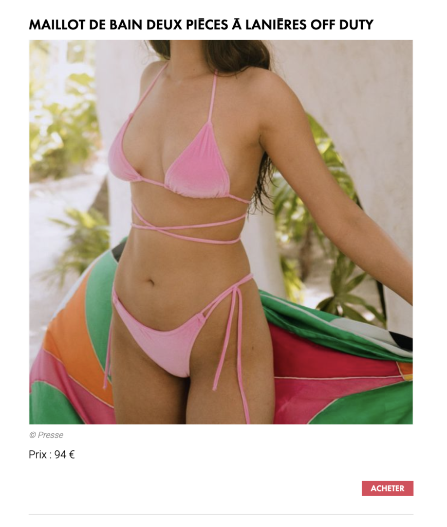 « Et pour fournir notre tiroir (armoire ?) de bikinis, voici les plus beaux maillots de bain deux pièces à shopper pour un été aussi hot que tendance. »