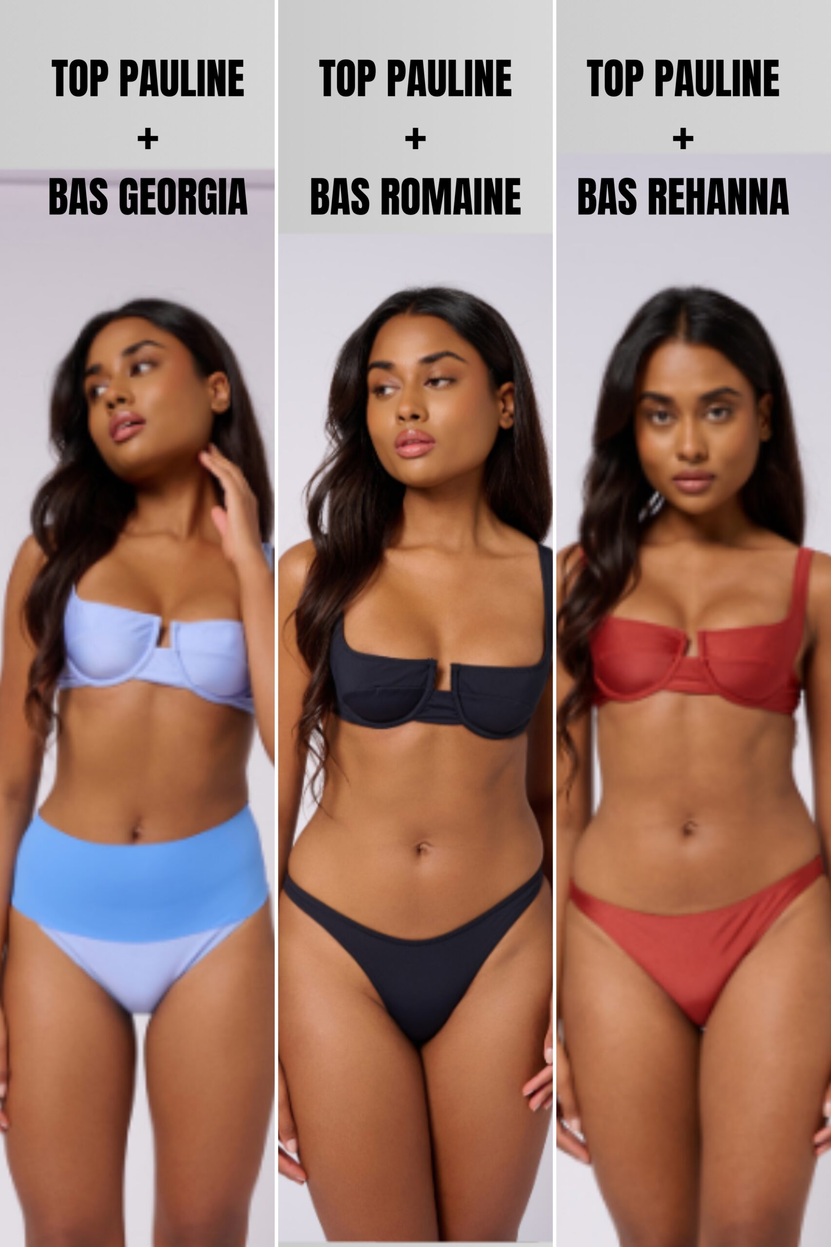 PAULINE est le balconnet parfait : ultra sensuel tout en restant confortable. À mixer avec l’une de nos 3 culottes pour un bikini personnalisé. 3 niveaux de serrage pour un maintien optimal. Bretelles réglables. METS-LE DANS TON PANIER ET UNE SÉLECTION DE BAS ASSORTIS APPARAÎTRA!